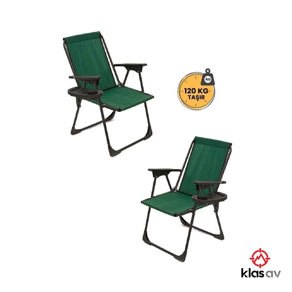 Klas av 2 Adet Yeşil Katlanır Kamp Sandalyesi - Plaj Piknik Sandalyesi Bardaklıklı M1
